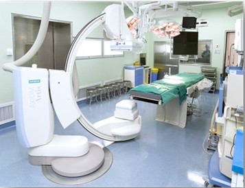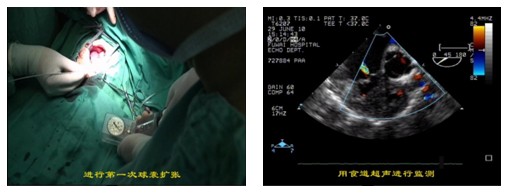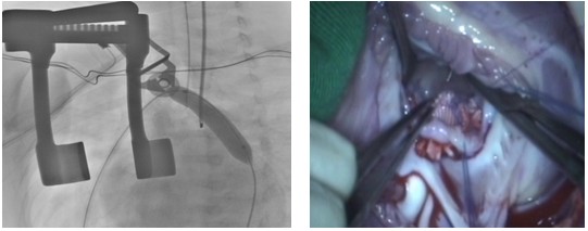 图注:在一站式杂交手术室内同期进行主动脉狭窄球囊扩张术(左)及室间隔缺损修补术(右)