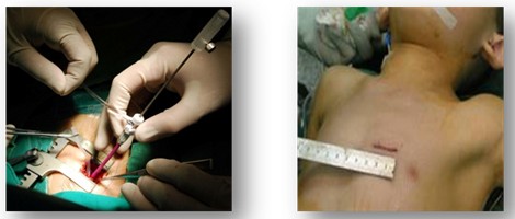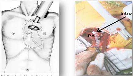 图注:经胸部小切口行肺动脉瓣支架植入术,避免二次大开胸及体外循环
