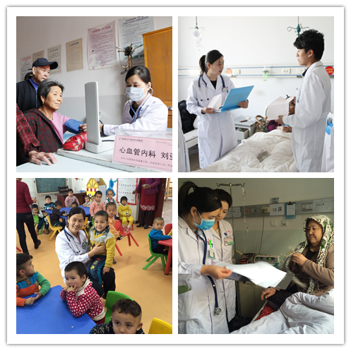 刘亚欣进行义诊、查房、为幼儿园小朋友体检等援疆工作
