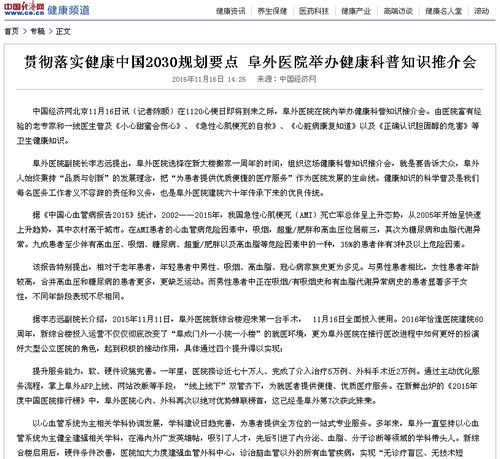 中国经济网:贯彻落实健康中国2030规划要点 阜外医院举办健康科普知识推介会