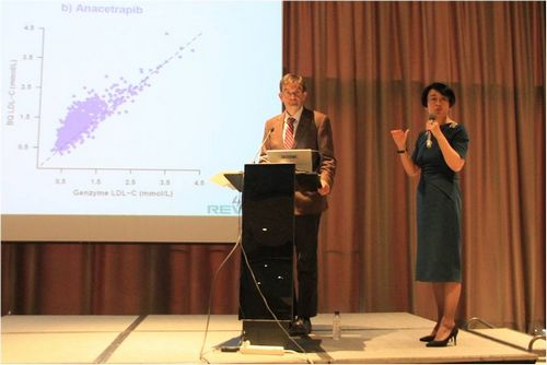 同样来自牛津大学REVEAL研究的主要研究者Martin Landray博士介绍REVEAL研究结果。在患者服用10mg/日或20mg/日阿托伐他汀(中国)、抑或20mg/日或80mg/日阿托伐他汀(其他国家)基础上,加用100mg/日Anacetrapib或者安慰剂,平均随访4年,相比于对照组:LDL-C下降约40%,HDL-C升高105%;显著降低冠脉死亡、心肌梗死和冠脉血运重建术的一级复合终点9%,意味着在现有优化药物治疗的基础上,每治疗1,000名患者,4年可额外避免10个冠脉事件发生;关键二级终点除缺血性卒中外,心肌梗死、冠脉血管重建术和心血管病总死亡也均显著下降。结合全球CTT协作组的荟萃分析结果预测,Anacetrapib改善预后的疗效主要来自其降低LDL-C效应,而非升高HDL-C效应。值得关注的是,Anacetrapib改善预后的疗效是在治疗1年后才开始显现,这与他汀类的临床试验结果高度一致,与早前三个阴性结果的CETP抑制剂研究均在研究随访2年时即提前终止试验,形成鲜明对照。目前研究结果已发布在最新一期的《新英格兰杂志》中,并将在今年11月中旬的AHA大会上持续报告进一步的研究相关结果。