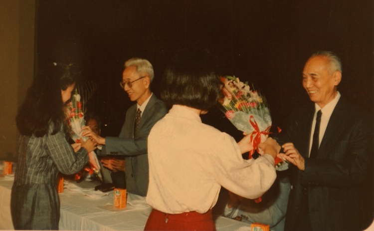 向陶寿淇、蔡如升教授敬献鲜花。