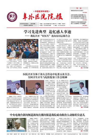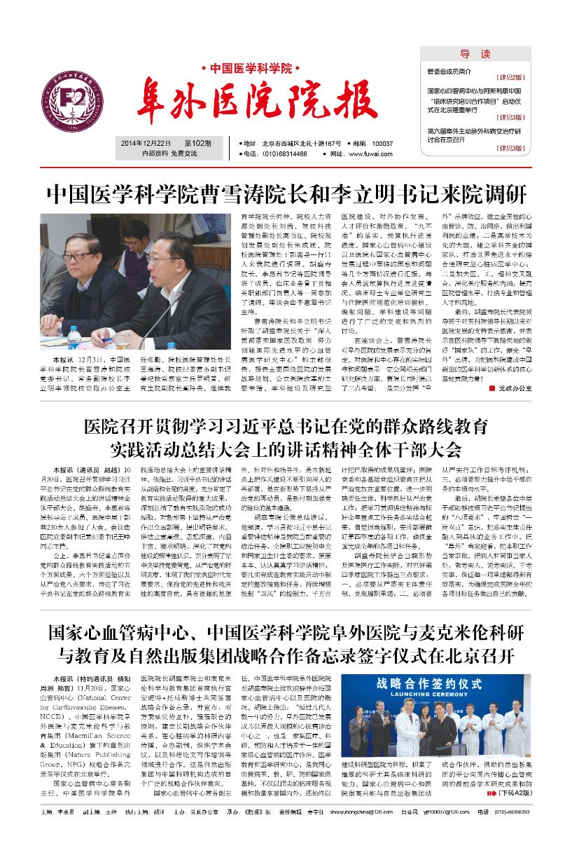 弘扬“阜外文化”,传递“阜外精神”——热烈祝贺《院报》创刊百期