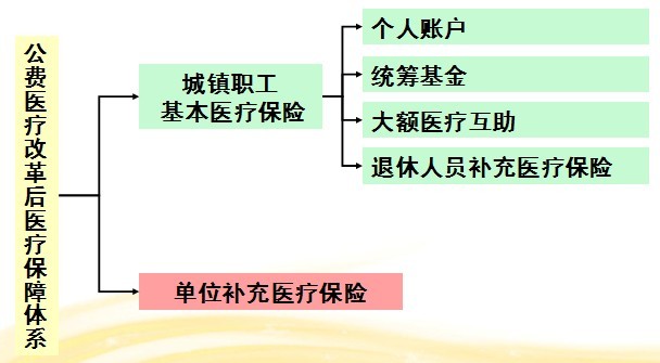 参加职工基本医疗保险,建立单位补充医疗保险,制度上与职工基本医疗保险加企业补充保险一致;医院选择、持卡就医与企业职工相同,对于目前公费医疗高于基本医疗保险的部分,由单位补充医疗保险给予解决。