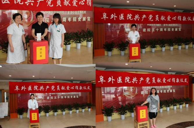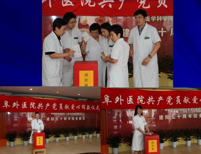 经广泛动员,我院共产党员献爱心捐款仪式于2011年6月30日在行政楼大厅举行。院所党政 领导带头,全院职工积极响应,踊跃捐款,截止7月4日,我院共795人捐款总额4万余元,全部款项在监察审计处监督下,经院所大财务和院校组织部直接汇缴 至北京市慈善协会专用帐户。