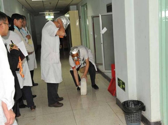 2010年9月26日下午4点30分整,随着两短一长的哨音响起,科研楼14楼病理与生理实验中心拉开了一场消防安全演习的序幕。