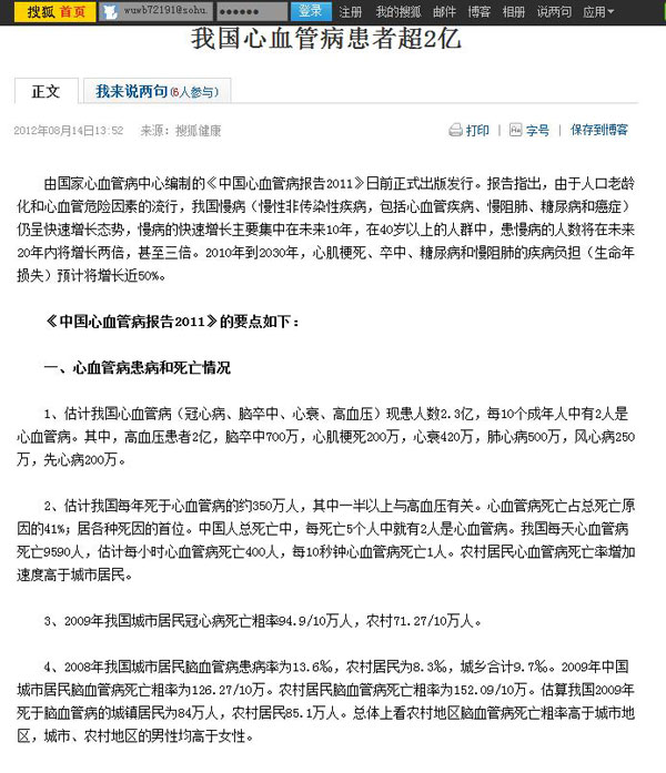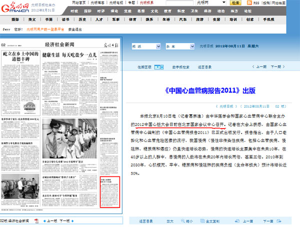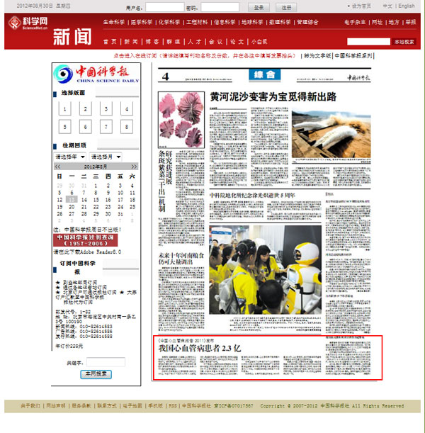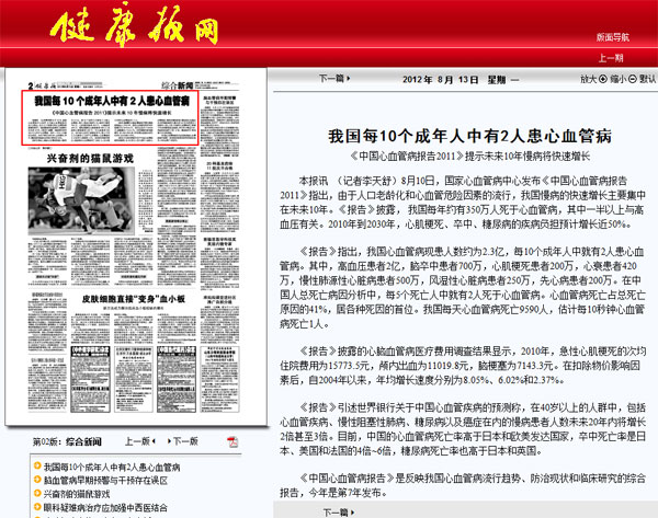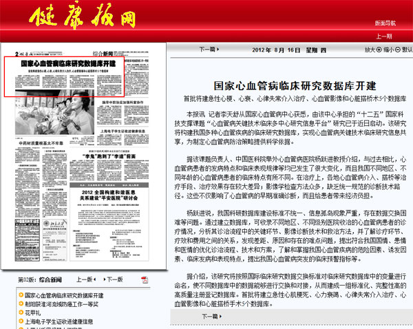 中国科学报:我国启动最大规模心血管病患病情况调查