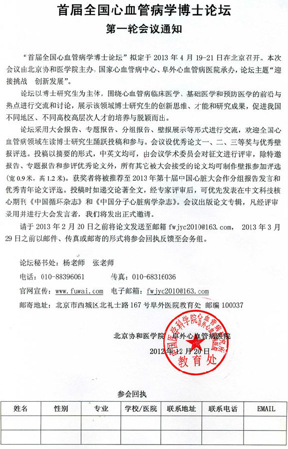 点击下载填写:首届全国心血管病学博士论坛第一轮会议通知.docx
