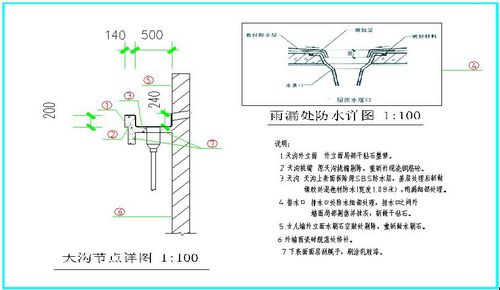 2、檐沟漏水重新做防水工程量(长度)约75米,并含各种雨落口约20处。