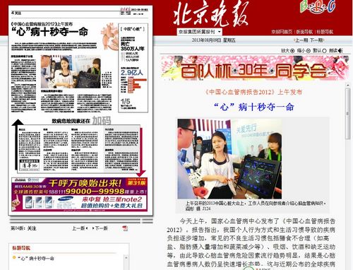 新华网:报告称2012年中国每天有9590人死于心血管病