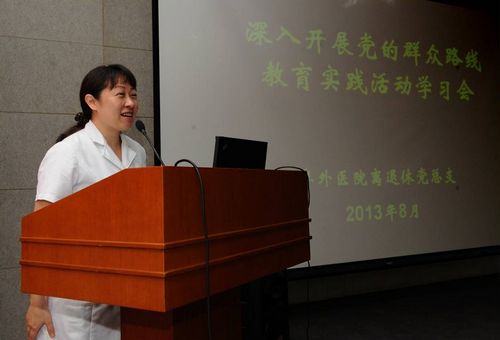 离退休总支书记段诺为离退休同志介绍医院党的群众路线教育实践活动实施方案