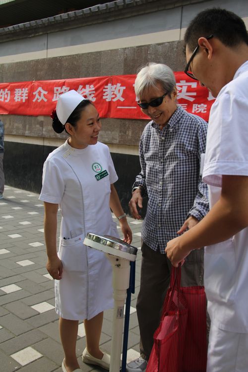 2013年8月24日,在我院党委、团委的大力支持下,在吴永健主任、方丕华主任、尤世杰主任、浦介麟主任的精心安排下,内科22、23病区党团员及志愿者来到了北京市西城区展览路社区开展为期半天的义诊活动。此次活动的义诊队伍由22、23病区的医疗专家、业务骨干以及入党积极分子、专科护理人员共同组成。