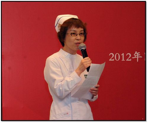 在比赛的间歇,护理部特意安排了一个特殊的仪式,为我院满三十年护龄的13位护理人员颁发由卫生部签发的奖章和荣誉证书。内科三病区德爱军老师作为代表上台发言。台下年轻护士们用热烈的掌声,对这些勤勤恳恳,把青春和汗水奉献给了我院护理事业的护理前辈表示崇高的敬意。