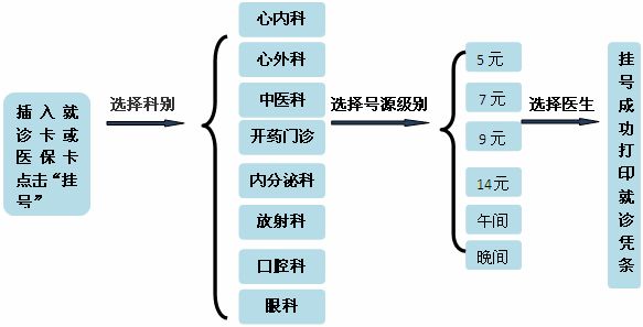 3、医保患者在自助机上建档成功后,可以持医保卡在自助机上挂号、交费,所有费用可以自动上传、结算。