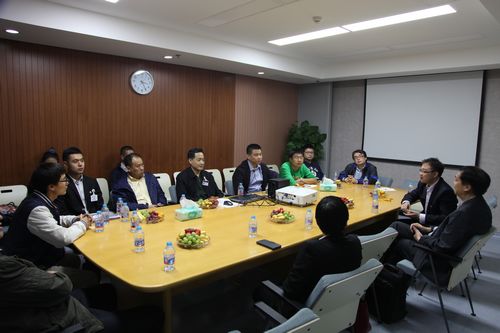 李志远副院长(右二)、郑哲院长助理(左二)与新加坡代表会前交流
