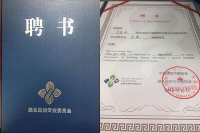 能源管理办公室主任吴春国(右二)被绿色医院专委会聘为专家(电气专业)并授予聘书
