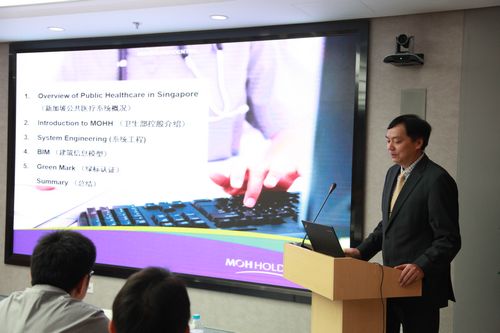 来自新加坡卫生部医疗基础设施规划与政策司的吴明博士,首先就“新加坡公共医疗系统”、“BIM”及“绿标认证”等内容进行分享。随后,各位与会代表结合在我院手术室及后勤设备区的实地考察,围绕“中新公共医疗工程发展”,对医疗建筑设计、节能管理、工程管理及信息化建设等议题展开研讨。