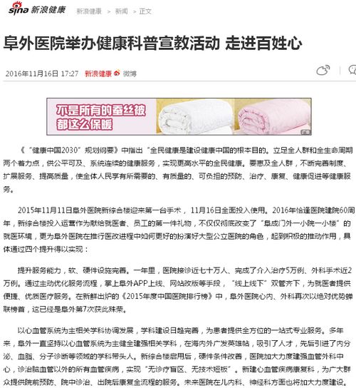 新浪网:阜外医院举办健康科普宣教活动 走进百姓心