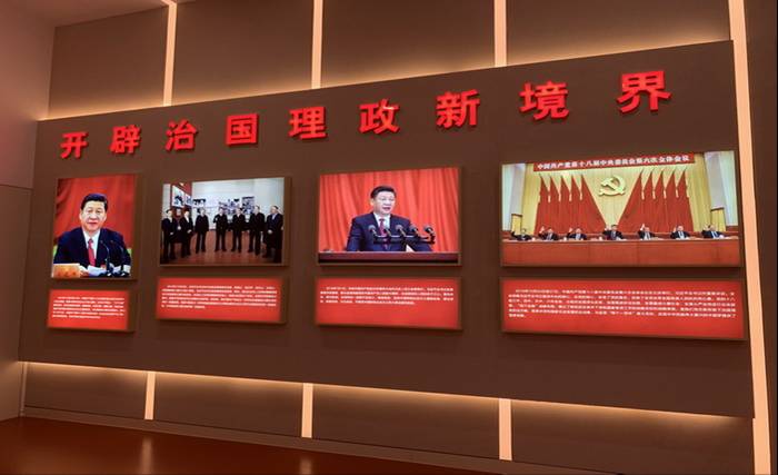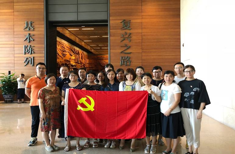 参观展览后,在支部书记的领誓下,党员们面向鲜红的党旗重温入党誓词,“为共产主义奋斗终身”的坚定誓言回荡在展览大厅。