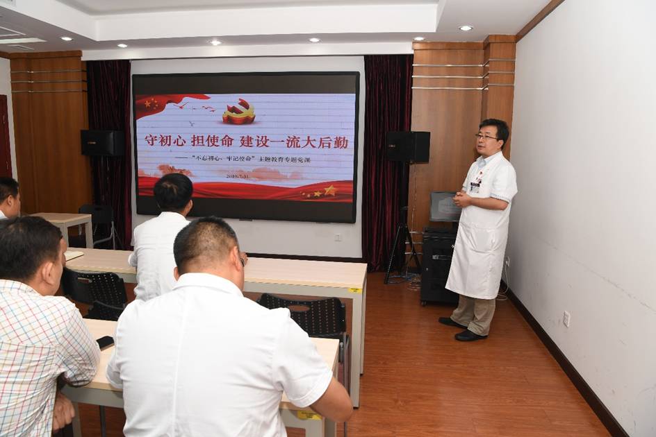 为深入贯彻落实“不忘初心、牢记使命”主题教育,7月31日,职能部门五支部召开“守初心、担使命、建设一流大后勤”主题教育党课,由分管院领导李志远副院长进行讲授,参会人员三十余人。