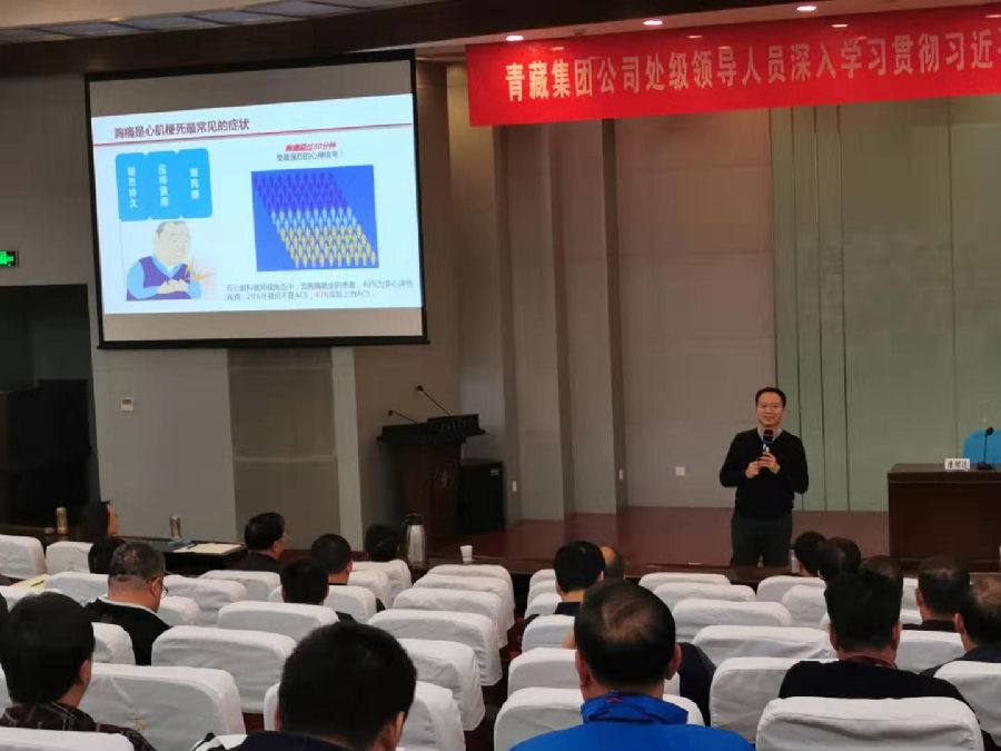 宣讲对象是青海集团公司的同志们,由于他们的工作地点主要分布在青海和西藏,其中有相当一部分人患有高血压,高血脂,高血糖,因此,针对这些问题,此次宣教内容主要围绕“胸痛的甄别和处理”“血脂知识科普”“糖尿病防治”等方面展开。