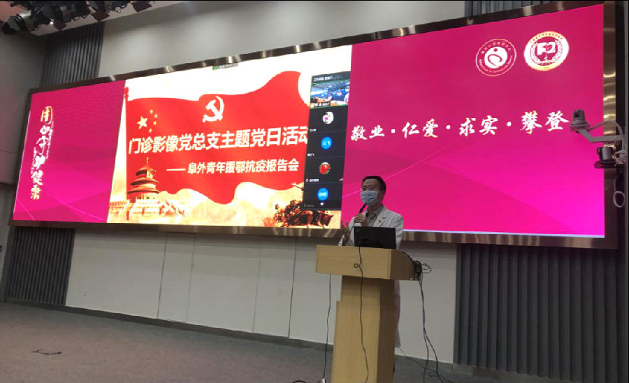 活动通过现场参与、线上直播的形式举行,由门诊影像党总支书记吕滨同志主持。