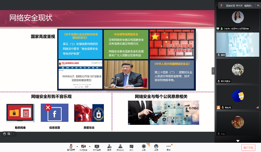 党的十八大以来,习近平总书记高度重视国家安全,敏锐洞察国家安全形势的新变化新特点新趋势,创造性提出总体国家安全观,而2020年新冠疫情的出现,让网络与信息安全上升到新的战略高度。为进一步提高党员的安全意识,切实落实“网络安全为人民,网络安全靠人民”的理念。2021年1月19日,内科四支部联合内科一支部线上开展了“提高安全意识”主题党日活动,会上邀请了党委办公室李琴副主任和信息中心李宏芳老师分别介绍了总体国家安全观和医院网络安全管理制度。