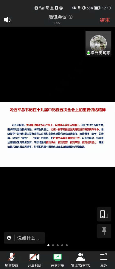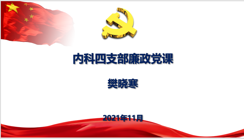 根据2021年中心和医院党的建设和党风廉政建设工作部署,按照医院党委纪委统一安排,要求各支部开展讲廉政党课活动。2021年11月23日中午12点,内科四支部召开线上全体党员大会,内容为支部樊晓寒书记讲党课,会议的内容是“廉政党课”。本次活动内科四支部40名党员除了5名党员因特殊事由请假外,35名党员都参加了学习。