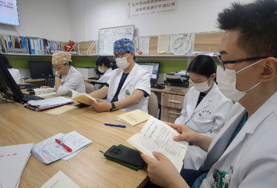 张而立主治医师:作为共产党员,作为一名年轻医生,我们要继续践行习近平新时代中国特色社会主义思想,统一思想,团结一致,继续奋斗在临床一线,为建设中国特色社会主义贡献更大的力量。