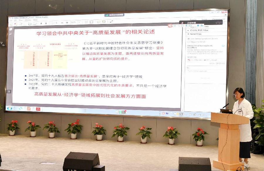 郑哲书记最后总结强调,全院上下要切实领会习近平总书记关于牢牢把握高质量发展这个首要任务的重要论述的精髓实质和核心要义。