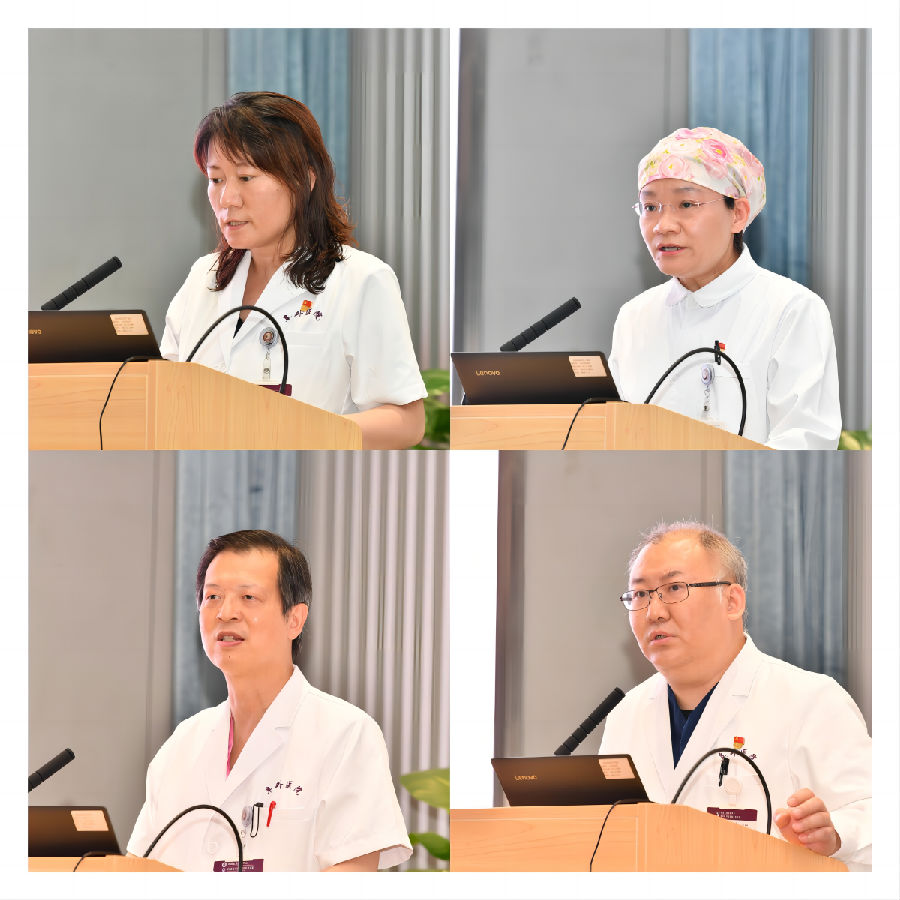 职能部门第九党支部书记、医保办公司主任鲁蓓,职能部门第七党支部书记、护理部主任张辰,外科第一党总支书记、血管外科中心主任舒畅,内科第一党总支书记、内科管委会主任窦克非分别从各自职能和所在科室职责角度助力高质量发展谈了思考和体会。