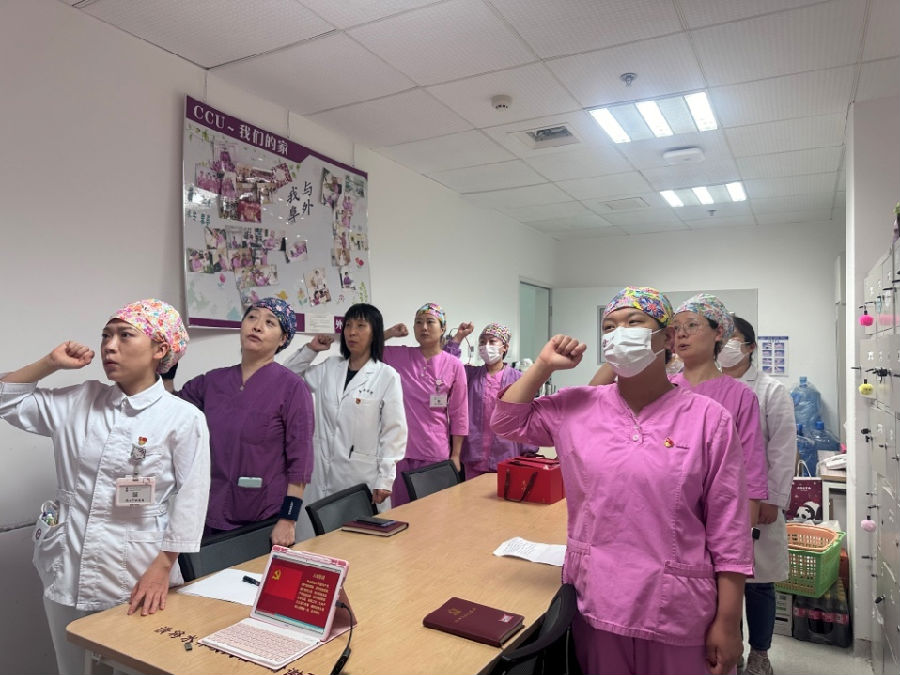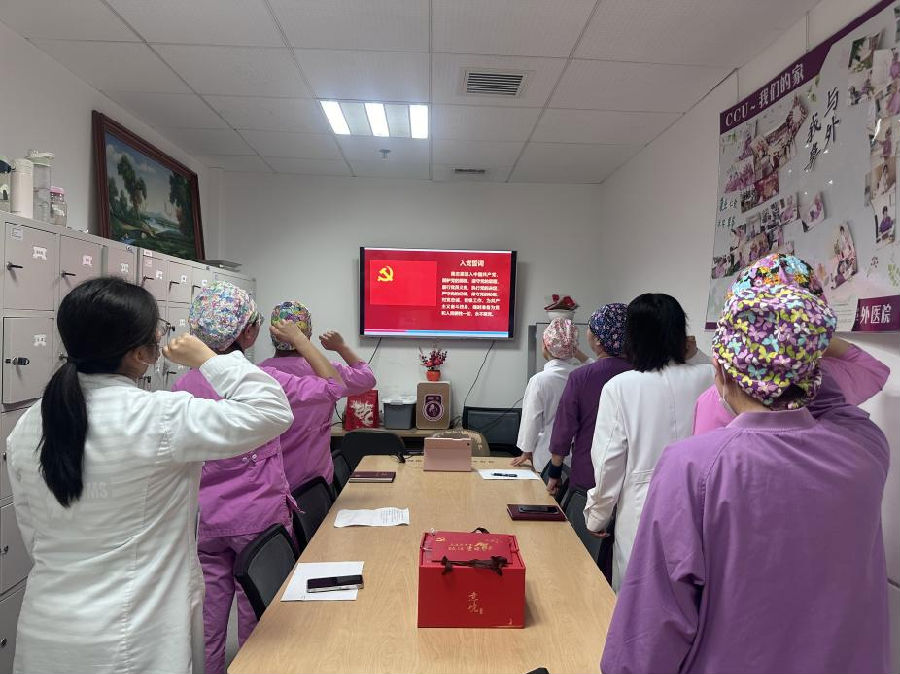两位新党员也分别做了发言,今后的工作和生活中,将以一名党员的身份严格要求自己,把今天的入党宣誓,内化于心、外化于行。表示在未来的工作中,不忘初心,奋飞不辍的将阜外精神传承下去,为中心医院发展的腾飞筑牢地基,为医院的再创辉煌贡献力量。