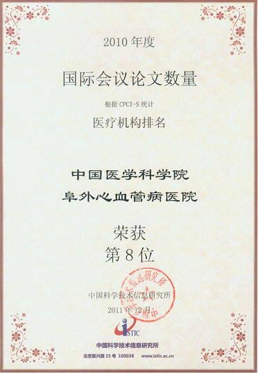 2010年度国际会议论文数量荣获第8名